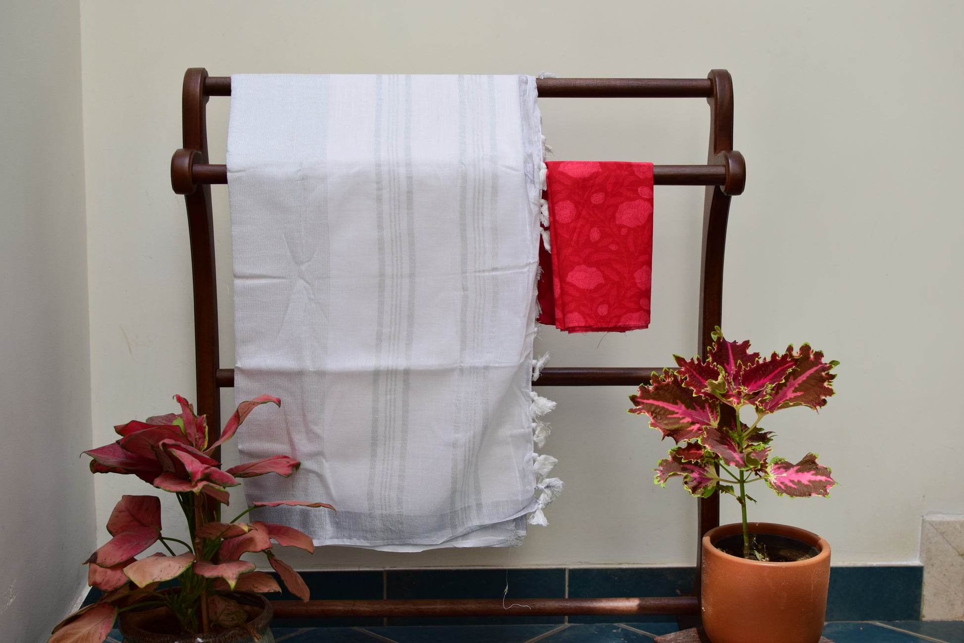 This is a Linen saree with a gorgeous silver Zari to enhance sheer elegance.